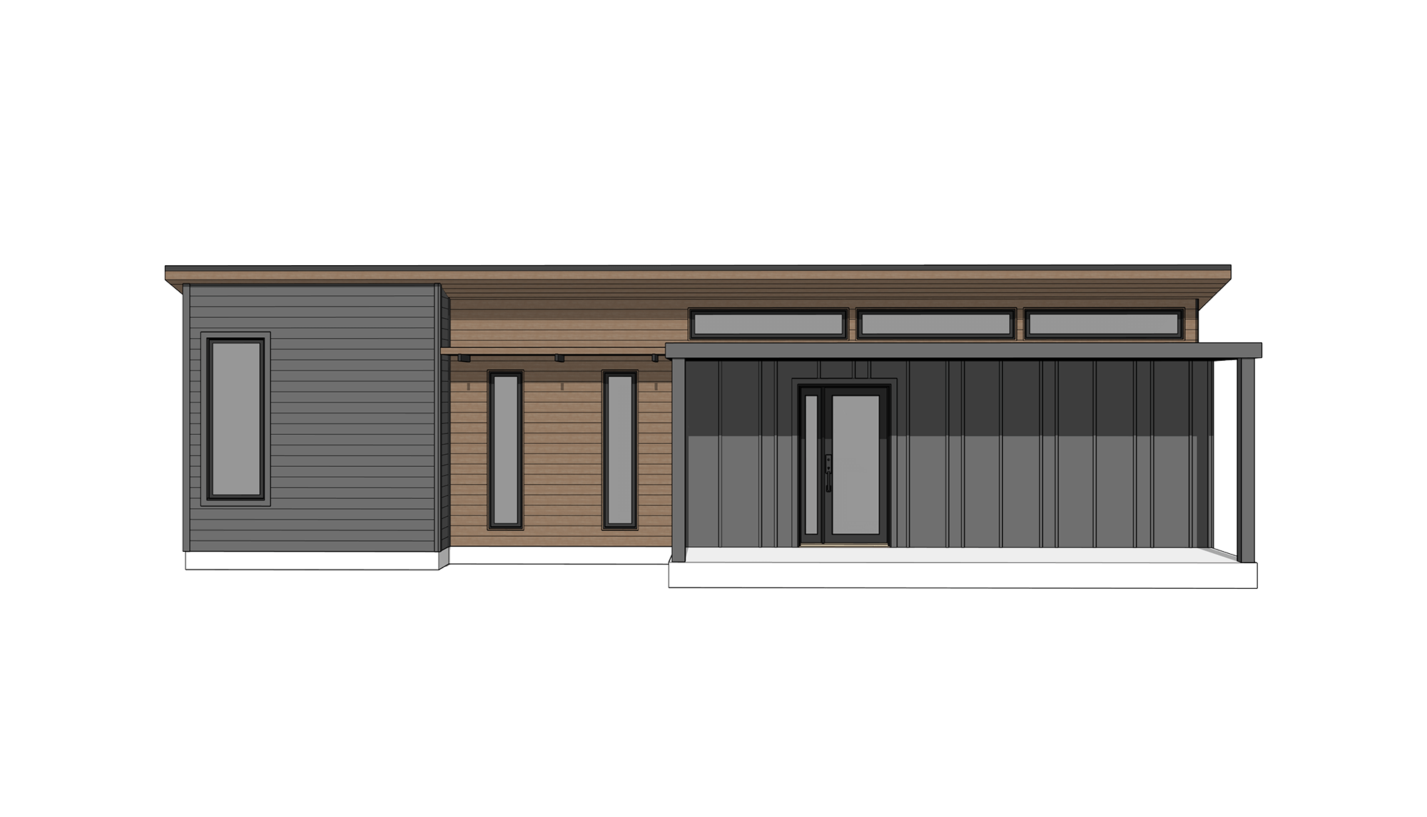 Smooth LP variated board & batten and lap siding. Thermally modified fascia, soffit, and wood accent, horizontal orientation.